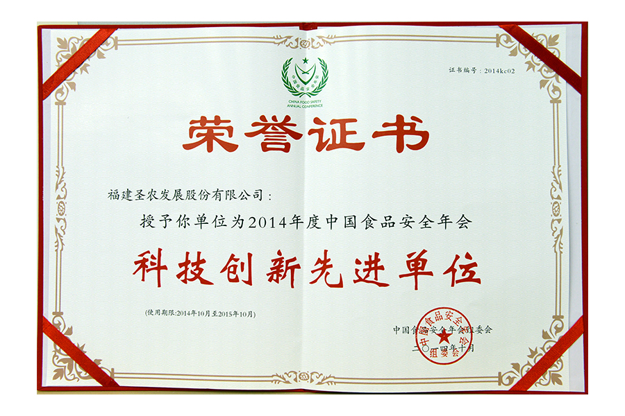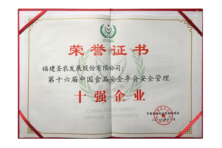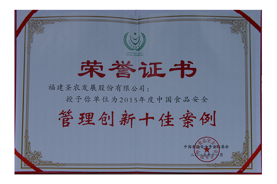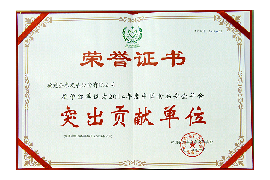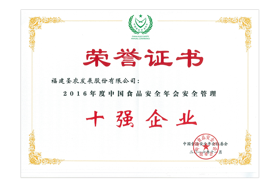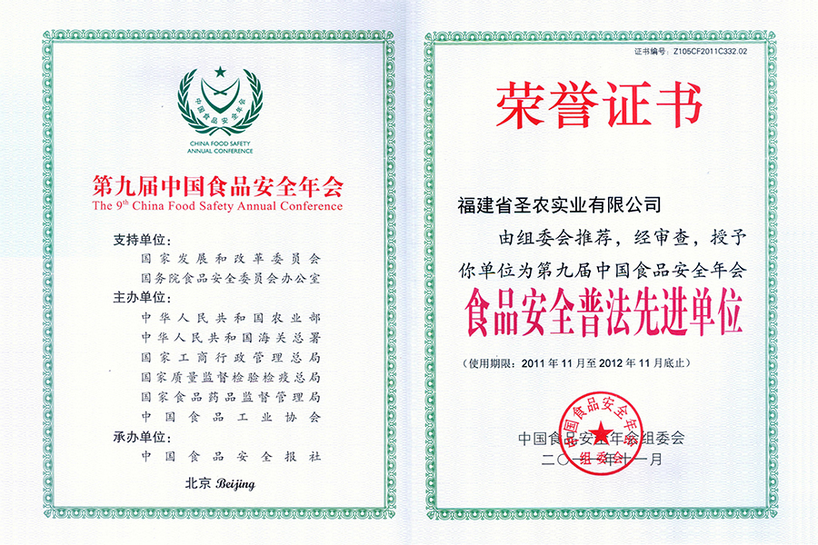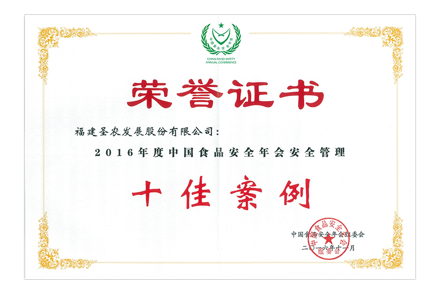2017年中国食品安全年会 百家诚信示范单位.证书