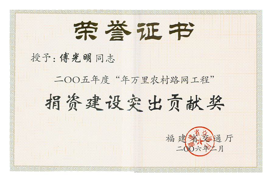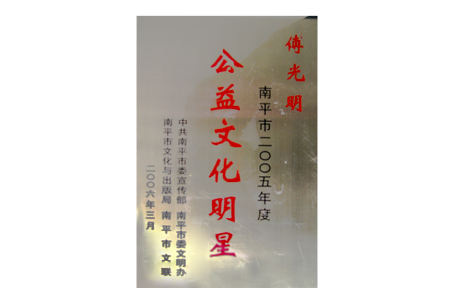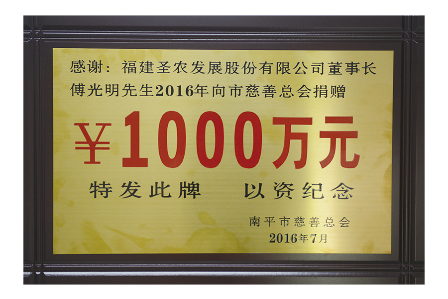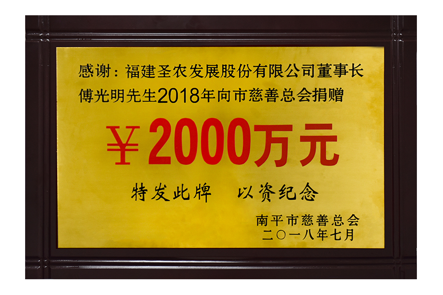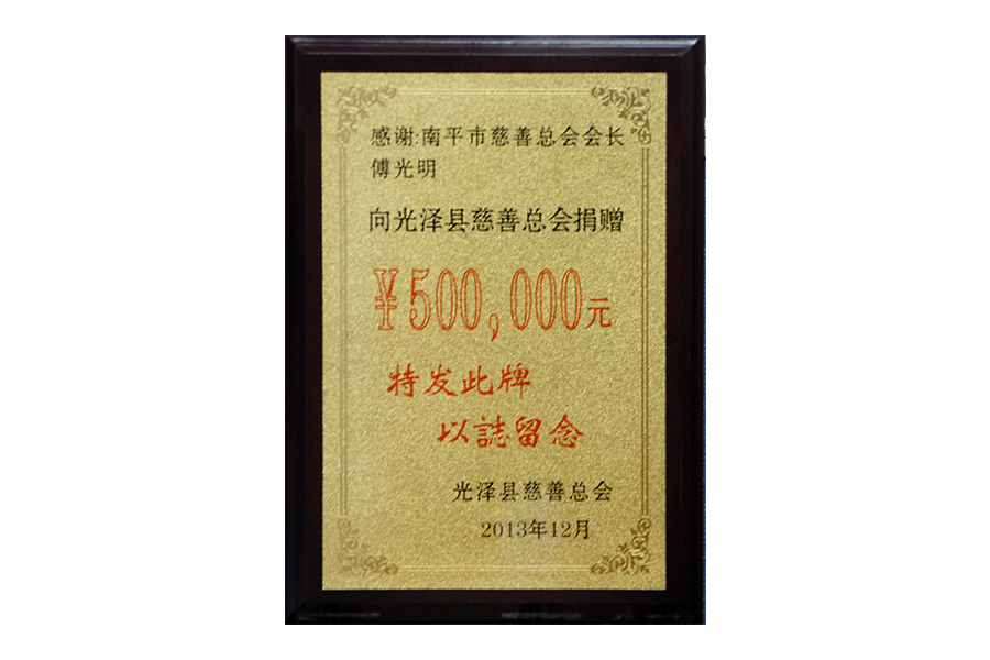 2017年(傅光明)向南平市慈善总会捐赠两千万