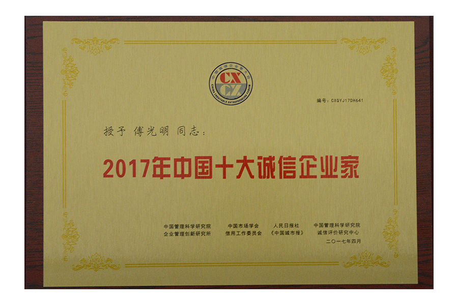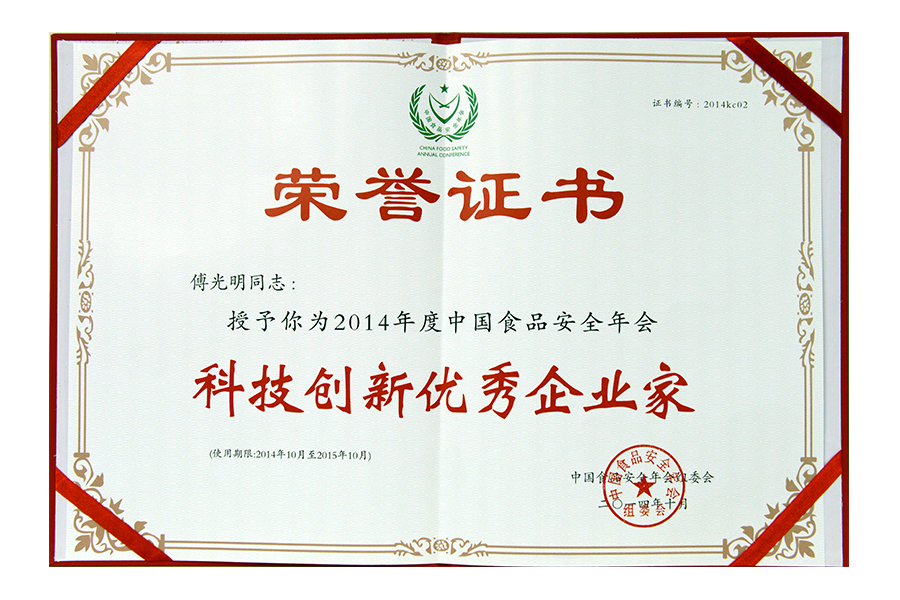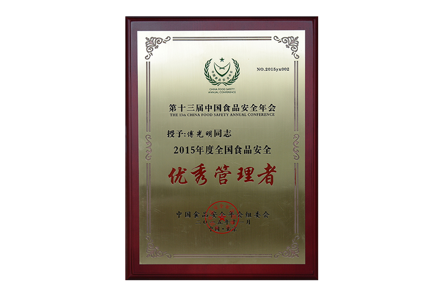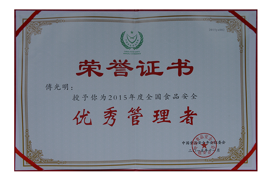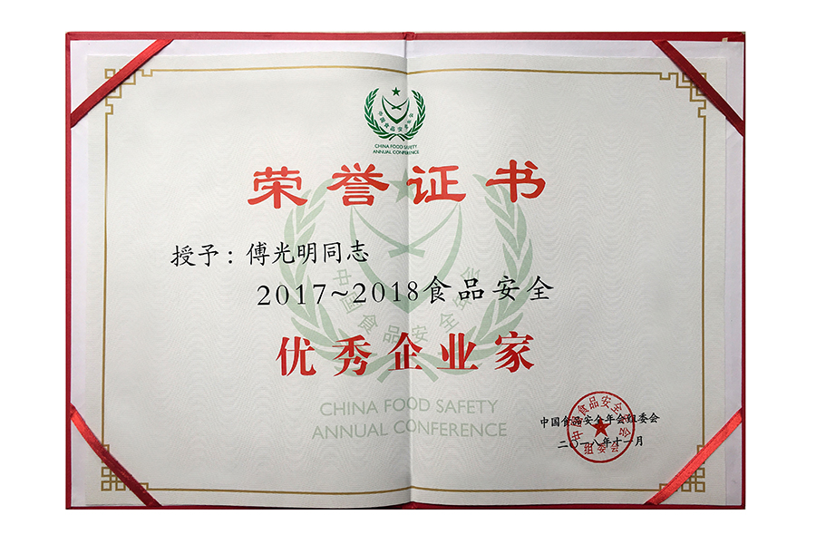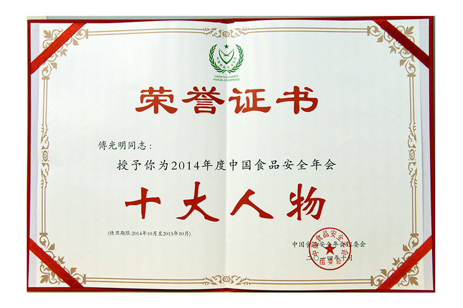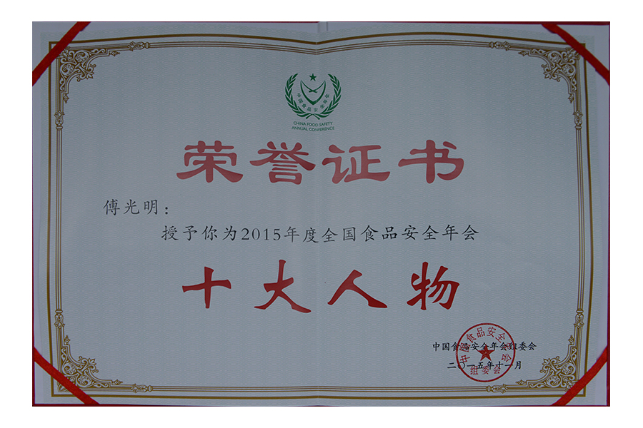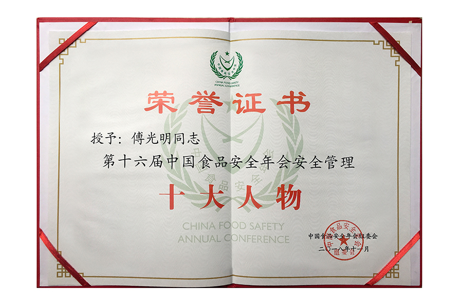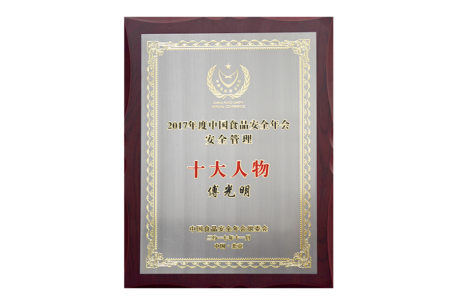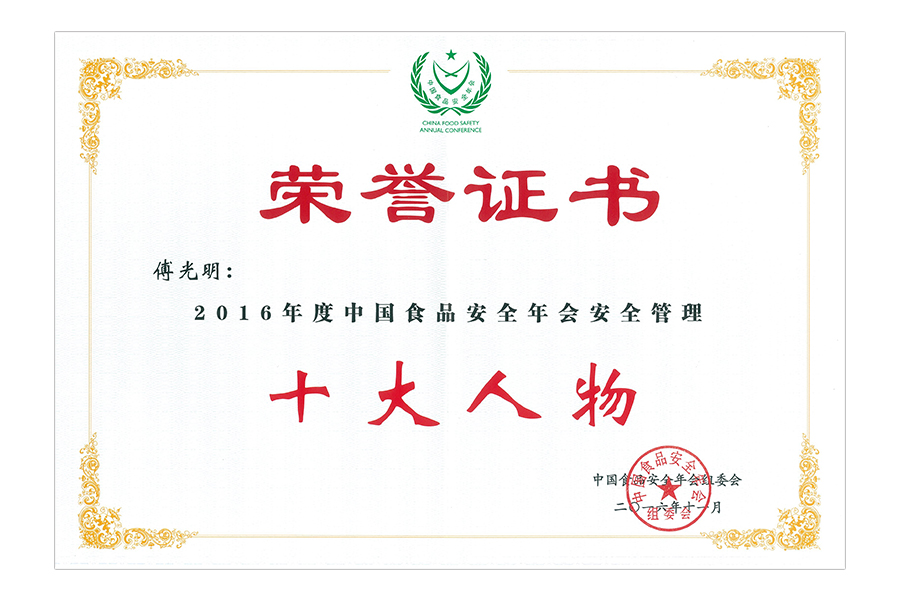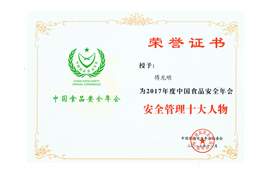 2017年(傅光明)中国食品安全年会 安全管理十大人物.证书