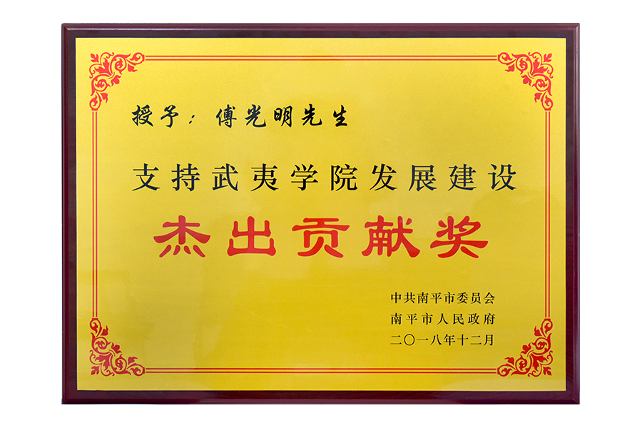 2018年傅光明支持武夷学院发展建设杰出贡献奖