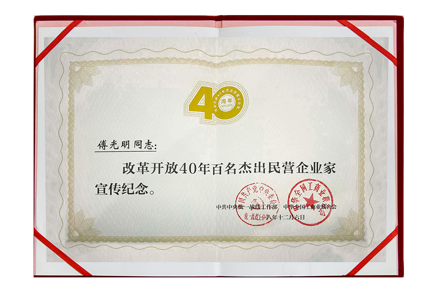 2018年傅光明改革开放40年百名杰出民营企业家宣传纪念