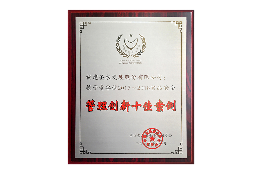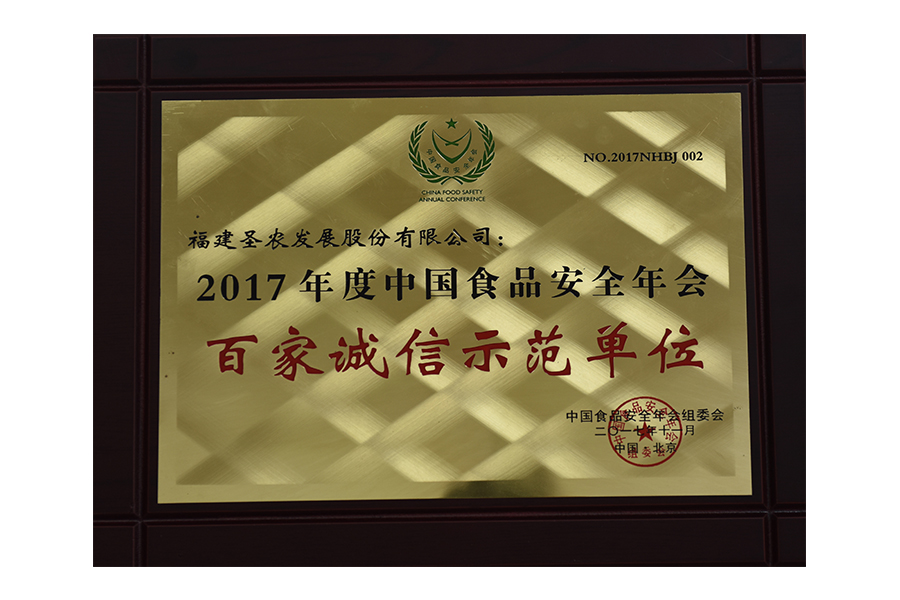 2017年中国食品安全年会 百家诚信示范单位.牌匾