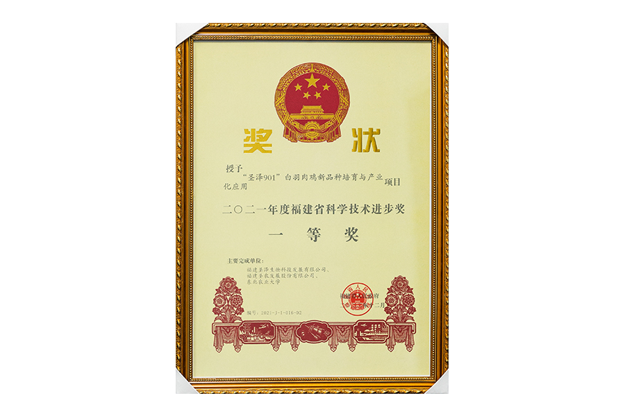 2021年度福建省科学技术进步奖一等奖(圣泽901项目)