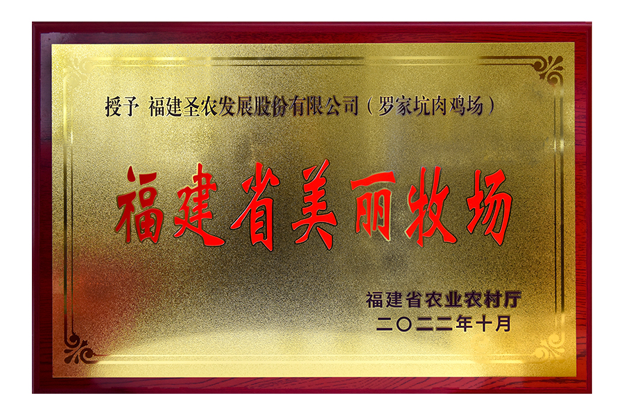 2023年福建农业农村厅授予js1996发展(罗家坑肉鸡场)福建省美丽牧场牌匾