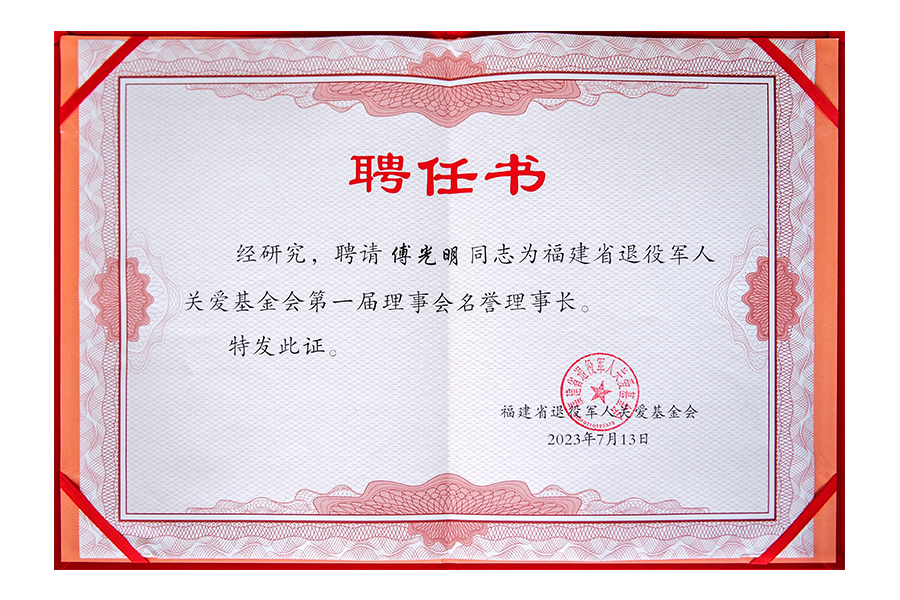 2023年福建省退役军人关爱基金会第一届理事会名誉理事长